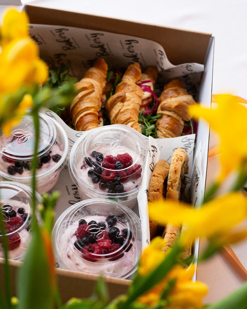Yllätä työkaverisi, tiimisi tai vaikka ystäväsi herkullisella aamupalaboksilla, joka tekee aamusta erityisen. Monipuolinen kokonaisuus sopii täydellisesti tarjottavaksi kokouksiin kuin muihinkin yhteisiin hetkiin.